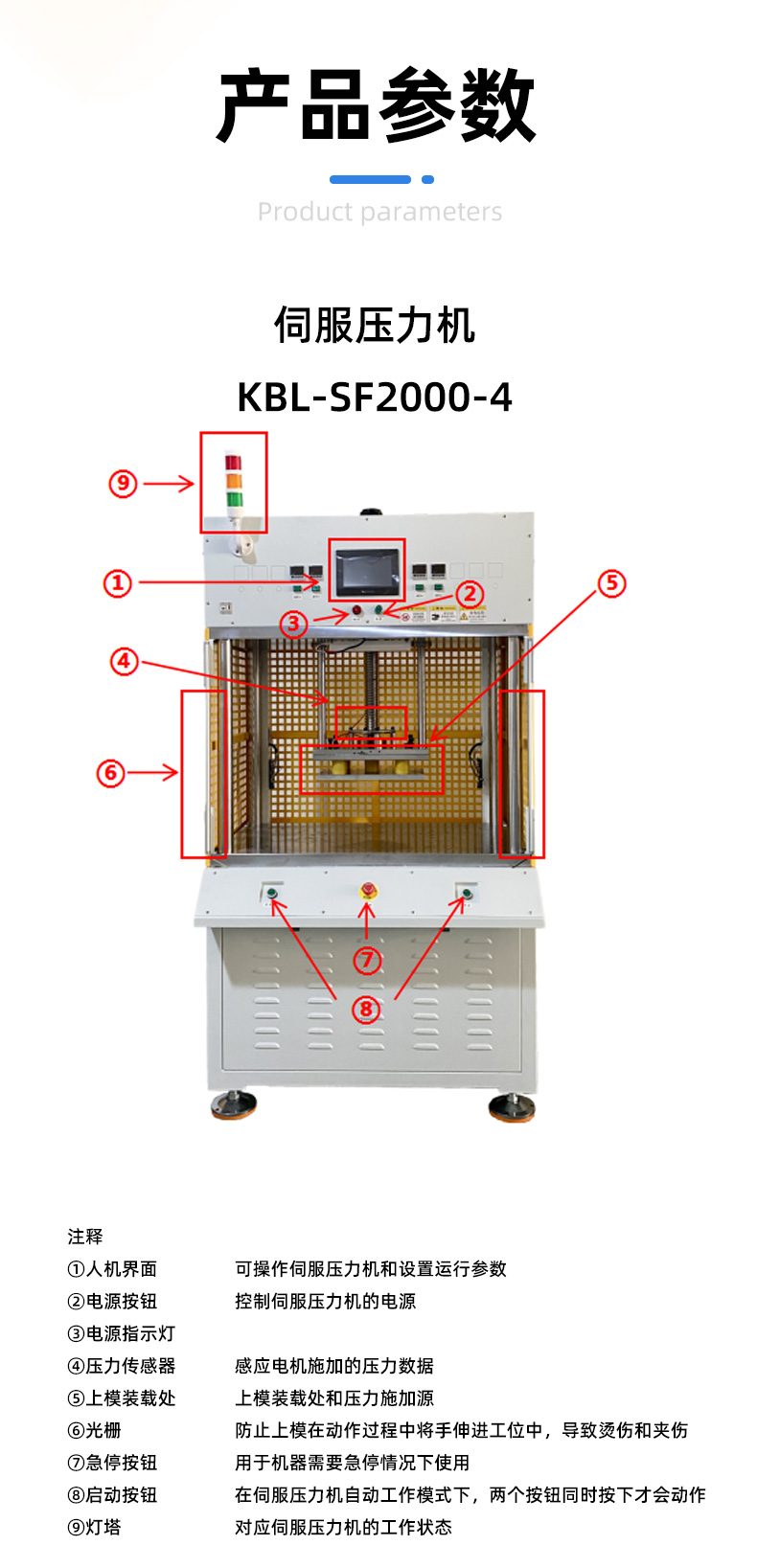 精密數控伺服電子壓力機簡稱伺服壓力機、電子壓力機,其工作原理是由伺服電機驅動H精度滾珠絲桿進行精密壓力裝配作業,全程實現壓裝力與壓入深度的閉環控制。另可配置加熱、實時壓力曲線顯示、多工位、掃碼、自動化等功能。
